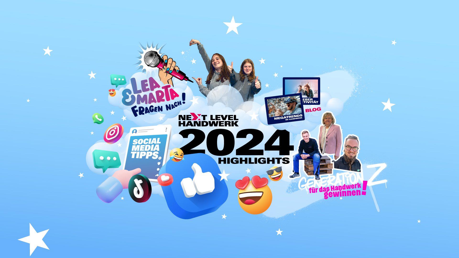 Anfang diesen Jahres starteten wir mit der Aktion „Lea und Marta zeigen wie es geht“. Die beiden Azubis aus der Generation Z nehmen Social Media Auftritte von Betrieben ganz genau unter die Lupe und präsentierten, die in ihren Augen, gelungensten Auftritte. Als Social-Media-Expertinnen geben sie Handwerksbetrieben zudem unter der Rubrik „Lea und Marta geben Tipps“ wertvolle Ratschläge auf den Weg. Von Content-Ideen über Plattformempfehlungen bis hin zu Best Practices zeigten sie, wie Handwerksunternehmen ihre Reichweite und Attraktivität steigern können. Mit dem Format „Lea und Marta fragen nach“ kommen junge Stimmen zu Wort. Dieses Format zeigt nicht nur die Perspektive der Nachwuchskräfte, sondern bietet auch Betrieben wertvolle Anhaltspunkte, wie sie sich besser auf die Bedürfnisse junger Menschen einstellen können.